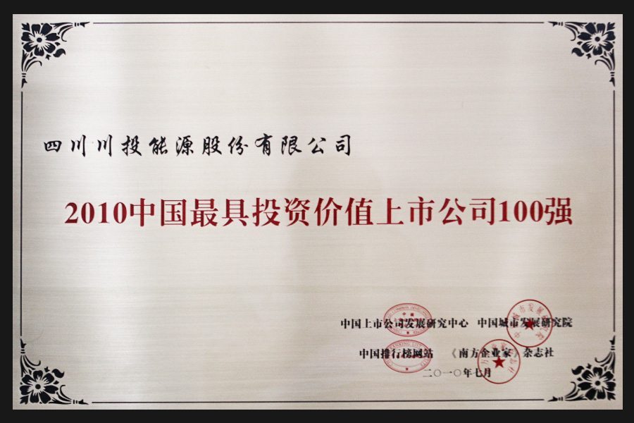 近年來,川投能源備受資本市場和社會各界青睞,連續入選滬深300指數樣本股、中證800指數樣本股、上證380指數樣本股、MSCI新興市場指數、MSCI ACWI全球指數,同時作為首批中國A股股票納入富時全球股票指數系列和標普新興市場全球基準指數;先后獲得“中國證券市場年會金鳳凰獎”、“中國上市公司市值管理百家優秀公司”、“最守誠信上市公司”、“最具投資價值上市公司”、《上海證券報》“公司治理資本創新公司獎”等榮譽;獲得中華全國總工會授予的“抗震救災恢復重建工人先鋒號”、“全國汶川地震災后恢復重建先進集體”;1998—2011年連續13年獲得“四川省重合同守信用先進單位”稱號;2011年8月,榮獲“全國模范勞動關系和諧企業”稱號;2011年11月,在《每日經濟新聞報》聯合多家媒體和116家機構評委傾力打造的全國上市公司“口碑榜”評選中,被代表市場2萬億元資金的廣大投資者評選為“最具成長潛力上市公司”;2011年12月,榮獲上海證券交易所評選的中國公司治理最高榮譽——“2011年度董事會獎提名獎”、“2011年度典型并購重組案例獎提名獎”;2012年9月,川投能源黨委榮獲“全省創先爭優先進基層黨組織”稱號; 2015年公司還獲得了由中國上市公司協會、中國證券投資者保護基金公司、上海證券交易所、深圳證券交易所、中國證券業協會、中國證券投資基金業協會聯合頒發的“2015中國最受投資者尊重的上市公司”入圍獎。2022年6月,入選中國上市公司協會“2021年度A股上市公司現金分紅榜單豐厚回報榜”;2023年11月獲得中國證券報頒發的“第二十五屆上市公司金牛獎·2022年度金信披獎”;2024年10月被證券時報評選為“主板上市公司價值100強”。主體信用等級長期維持AAA,以優良的業績持續回報投資人,受到國內國際兩個市場的高度關注和價值認可。