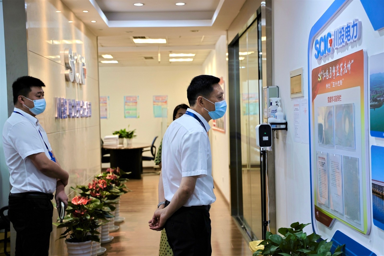 冉蘭平一行首先對川投電力的辦公區域、公共區域等關鍵點位進行了檢查,并詳細查看了防疫物資儲備情況、疫情防控工作臺賬、人員健康登記臺賬,詢問了個別“黃碼”人員和“軌跡重疊”人員的核酸檢測情況和居家辦公情況等。隨后,冉蘭平一行又采取“掃樓”方式,對川投大廈6樓、9樓各辦公室的疫情防控工作落實情況進行逐個督查檢查。