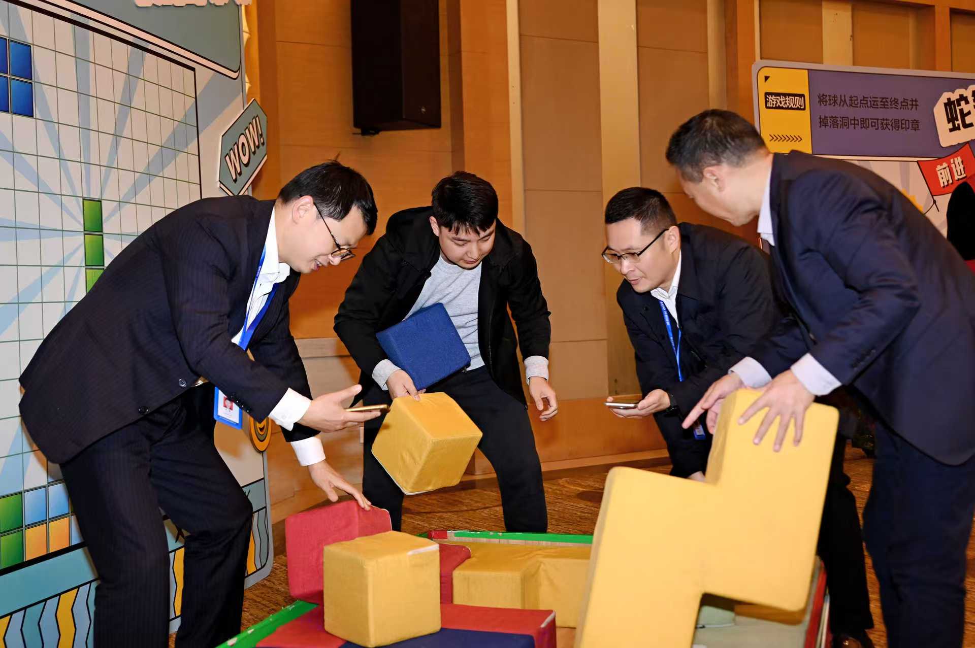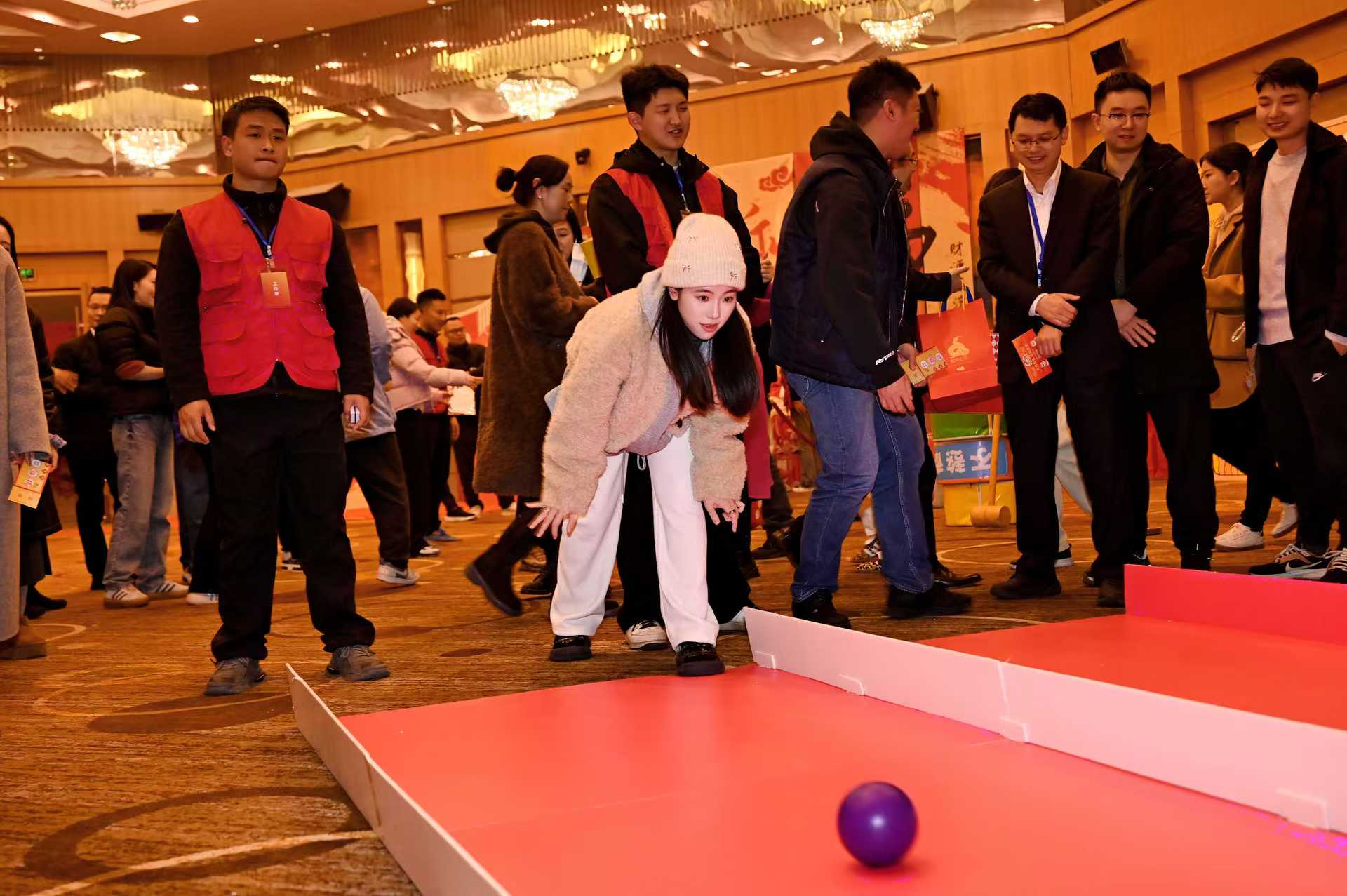 一路向前區,職工們輪流上陣,用力擲出保齡球,體驗運動的樂趣與激情;錘走煩惱區,職工們通過敲擊“煩惱圈”,釋放壓力,享受智慧與技巧的碰撞 ;蛇舞新春區,參賽者屏息凝神,用盡全力推動小球,看它在賽道上蜿蜒;拼出未來區,只見每位職工選手抱著不同顏色和形狀的“方塊”,構建圖案并迅速完成拼裝。