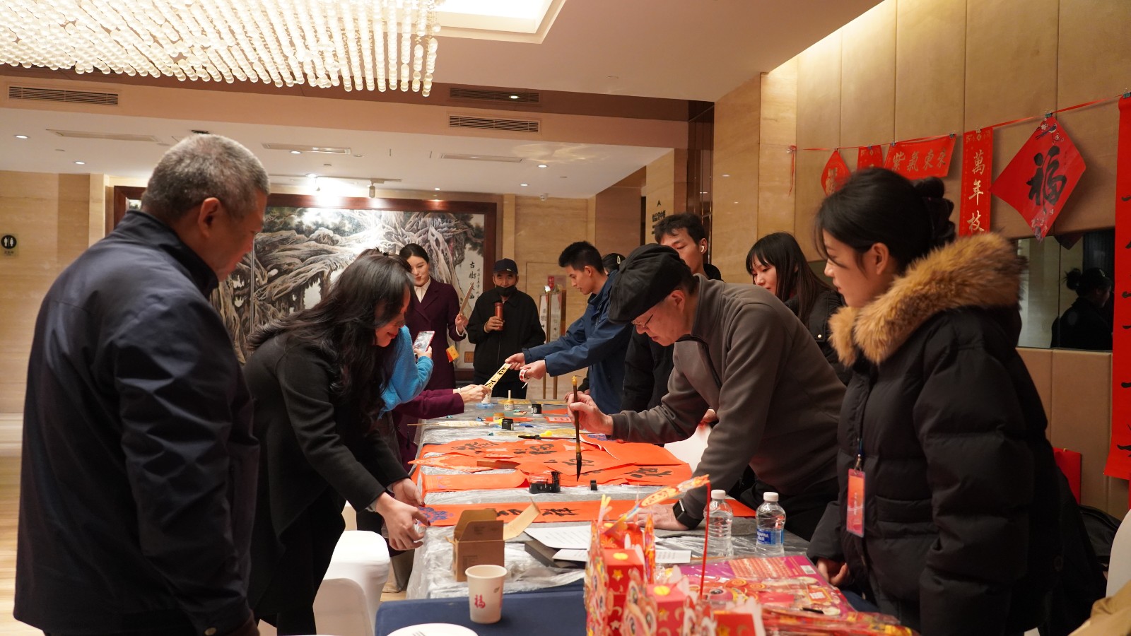 案桌上,筆墨凝香,職工們紛紛揮毫潑墨,現場創作了一幅幅新春對聯和剪紙畫。紅紙黑字,一個個“福”字躍然紙上,風格多樣的春聯傳遞著溫暖與喜慶。每一筆、每一劃都融入了職工們對新春的祝福與美好期許,為即將到來的新年增添了濃厚的文化氛圍。