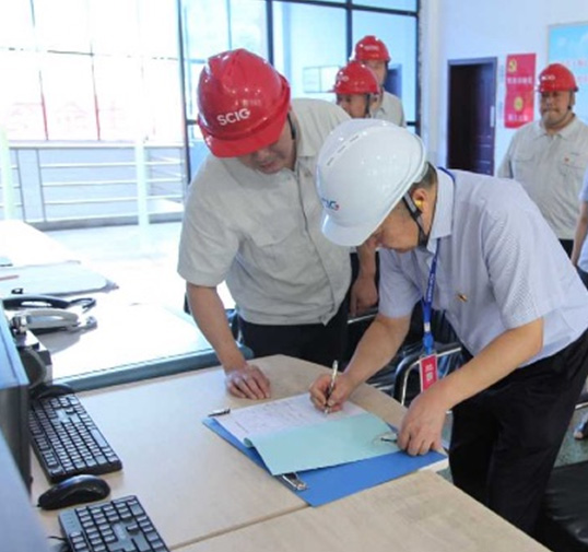 宣講會結束后,陳長江一行在楊濤的陪同下分別前往鳳鳴橋站和官田壩站生產現場,對設備運行、環境保護措施、防洪物資準備、汛期帶班領導值班情況、運行記錄、“兩票三制”執行等情況進行了檢查。