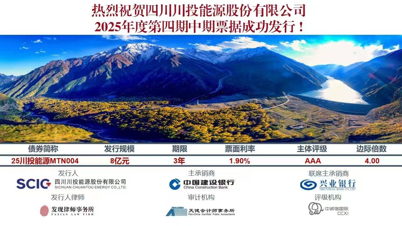 川投能源成功發(fā)行2025年第四期中期票據(jù)