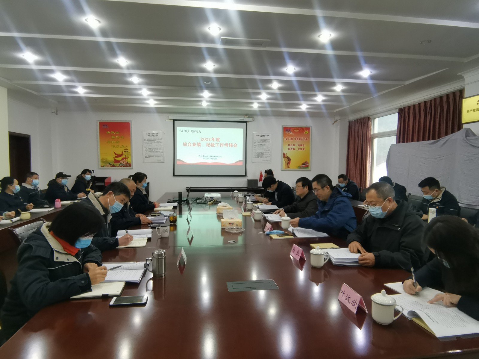 1月12日,川投能源黨委委員、副總經(jīng)理、總法律顧問楊平率隊赴天彭電力,開展黨建工作、紀檢監(jiān)察、生產(chǎn)經(jīng)營等五方面綜合業(yè)績考核,充分發(fā)揮考核在檢驗工作成效、推動改革發(fā)展中的導向作用。川投能源考核組成員、天彭電力經(jīng)營班子成員、中層干部、員工代表參加會議,川投能源經(jīng)營管理部經(jīng)理陳元峰主持會議。