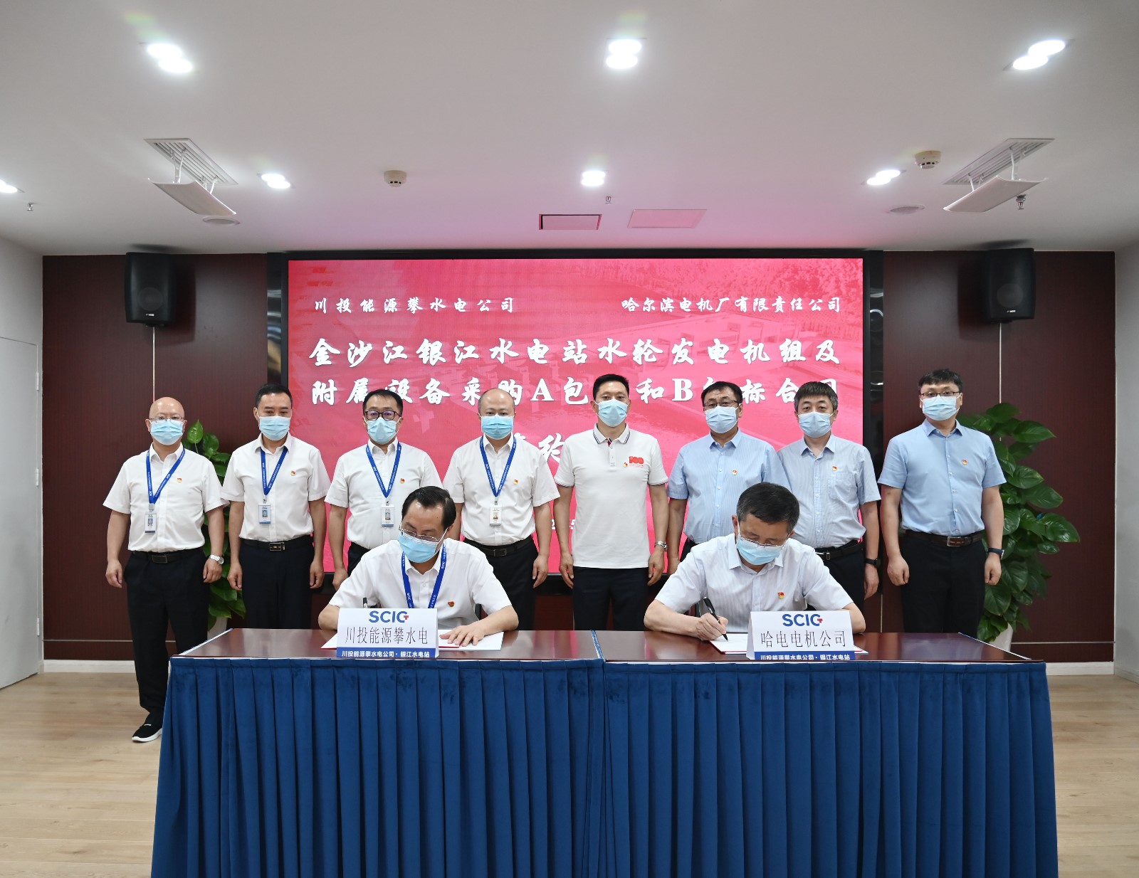 5月13日上午,攀水電公司在公司2620會議室舉行了金沙江銀江水電站水輪發電機組及附屬設備采購A包標和B包標合同簽約儀式。川投能源黨委副書記、工會主席冉蘭平出席儀式并見證簽約,川投能源副總經理、攀水電公司黨總支書記、董事長、攀新能源公司董事長徐孝剛與哈爾濱電氣股份有限公司副總裁、哈爾濱電機廠有限責任公司董事長、黨委書記王貴代表雙方簽約,儀式由攀水電公司黨總支委員、總經理吳巍嶼主持,哈爾濱電機廠有限責任公司相關部門人員、攀水電公司與攀新能源公司領導及相關人員共23人出席儀式。