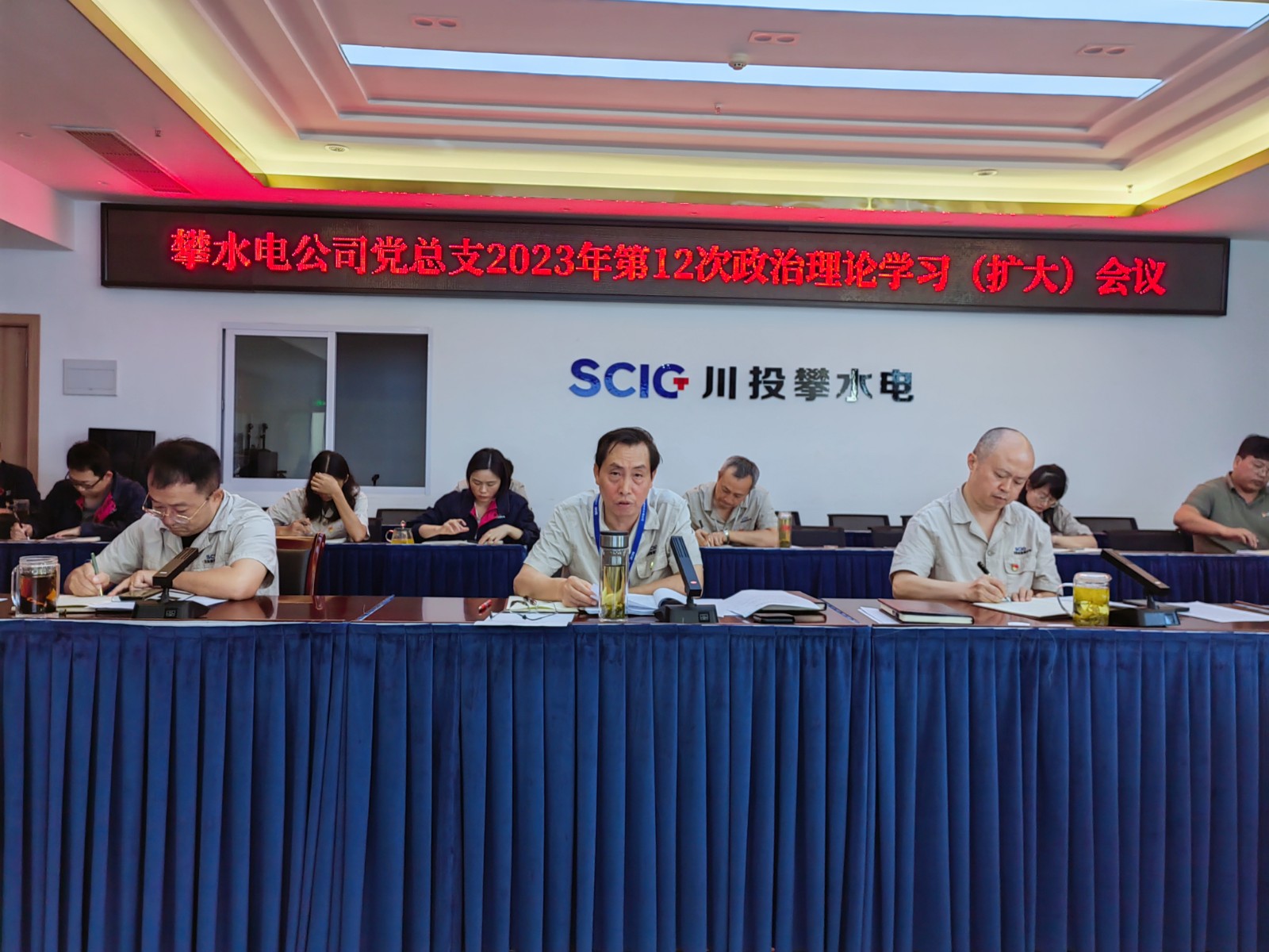 10月27日,公司黨總支在2620會議室召開了2023年第12次政治理論學習(擴大)會議,會議由川投能源副總經理,攀水電公司黨總支書記、董事長徐孝剛主持,黨總支政治理論學習會成員、全體中干、支部書記、其他黨員、入黨積極分子共30余人參加學習。