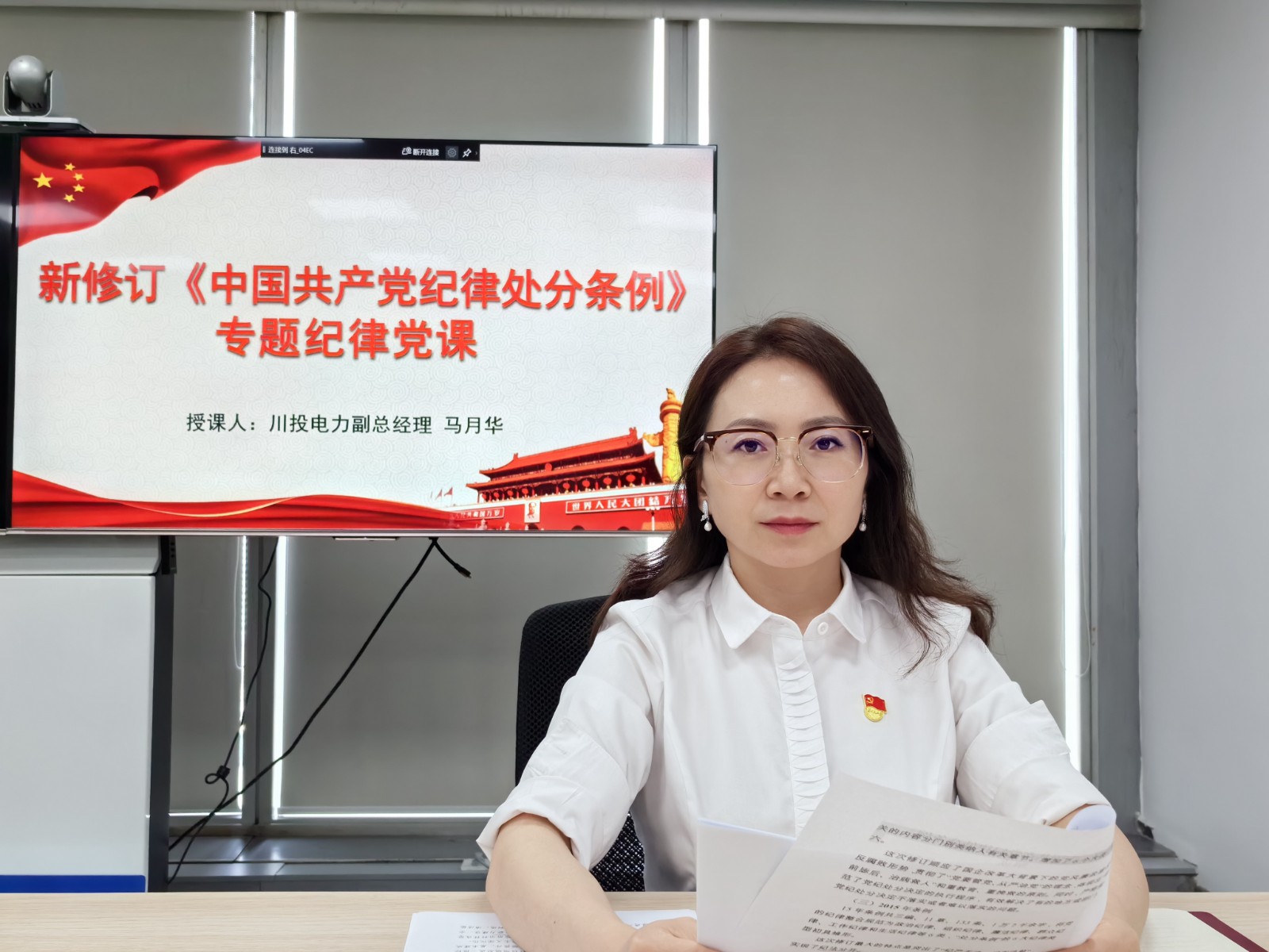 會上,川投電力副總經理馬月華為支部全體黨員講授專題紀律黨課。馬月華主要圍繞《中國共產黨紀律處分條例》的歷史沿革、修訂概要和條文解讀三個方面開展授課,并結合警示教育案例,通過“以案說紀、以案說規”警示廣大黨員以案為鑒,強化了全體黨員干部對條例的理解和認識。馬月華強調:一要堅守紀律底線,加強廉政建設。要時刻以黨員的標準嚴格要求鞭策自己,時刻牢記黨規黨紀,自覺接受監督,守住紅線底線。二要堅守政策底線,強化黨員意識。強化責任意識,正確處理個人與組織的關系,堅決服從組織安排,積極主動完成黨組織交辦的任務。三要堅守道德底線,做到廉潔自律。堅持“勿以惡小而為之,勿以善小而不為”,時刻自重自省自警自勵,遵守道德規范,遵守黨的紀律,做到懂法紀、明規矩、知敬畏、存戒懼,筑牢拒腐防變的防線。