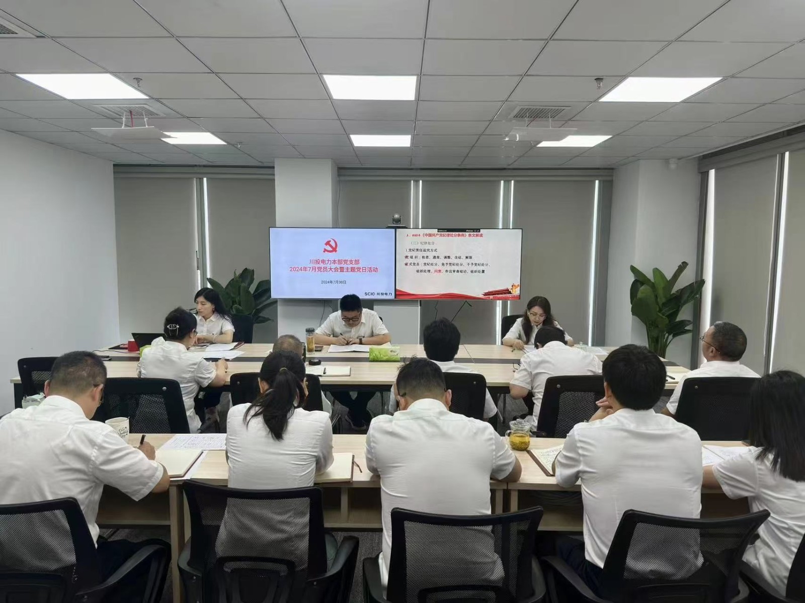 為貫徹落實習近平總書記關于全面加強黨的紀律建設的重要論述,增強全體黨員干部紀律意識、規矩意識,持續深化黨紀學習教育,推動省委十二屆五次全會精神落地落實,7月30日,川投電力本部黨支部召開7月主題黨日活動。會議由支部書記李天宏主持,支部全體黨員、入黨積極分子參加會議。