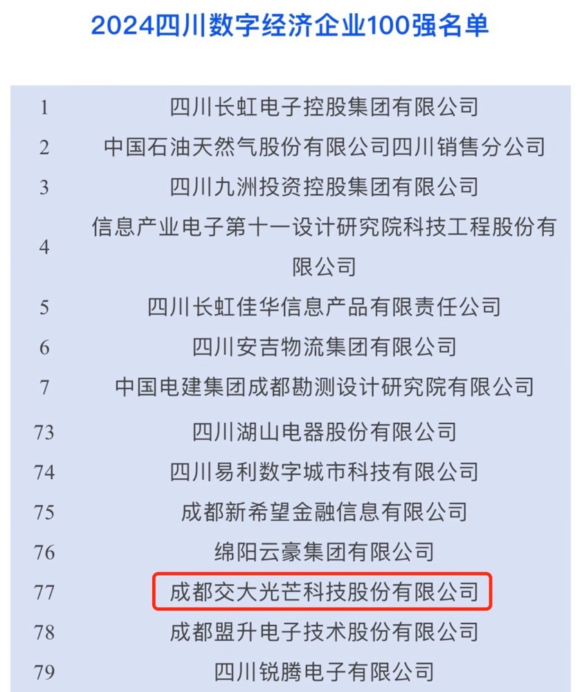 【交大光芒】交大光芒榮登2024年四川數字經濟企業100強榜單