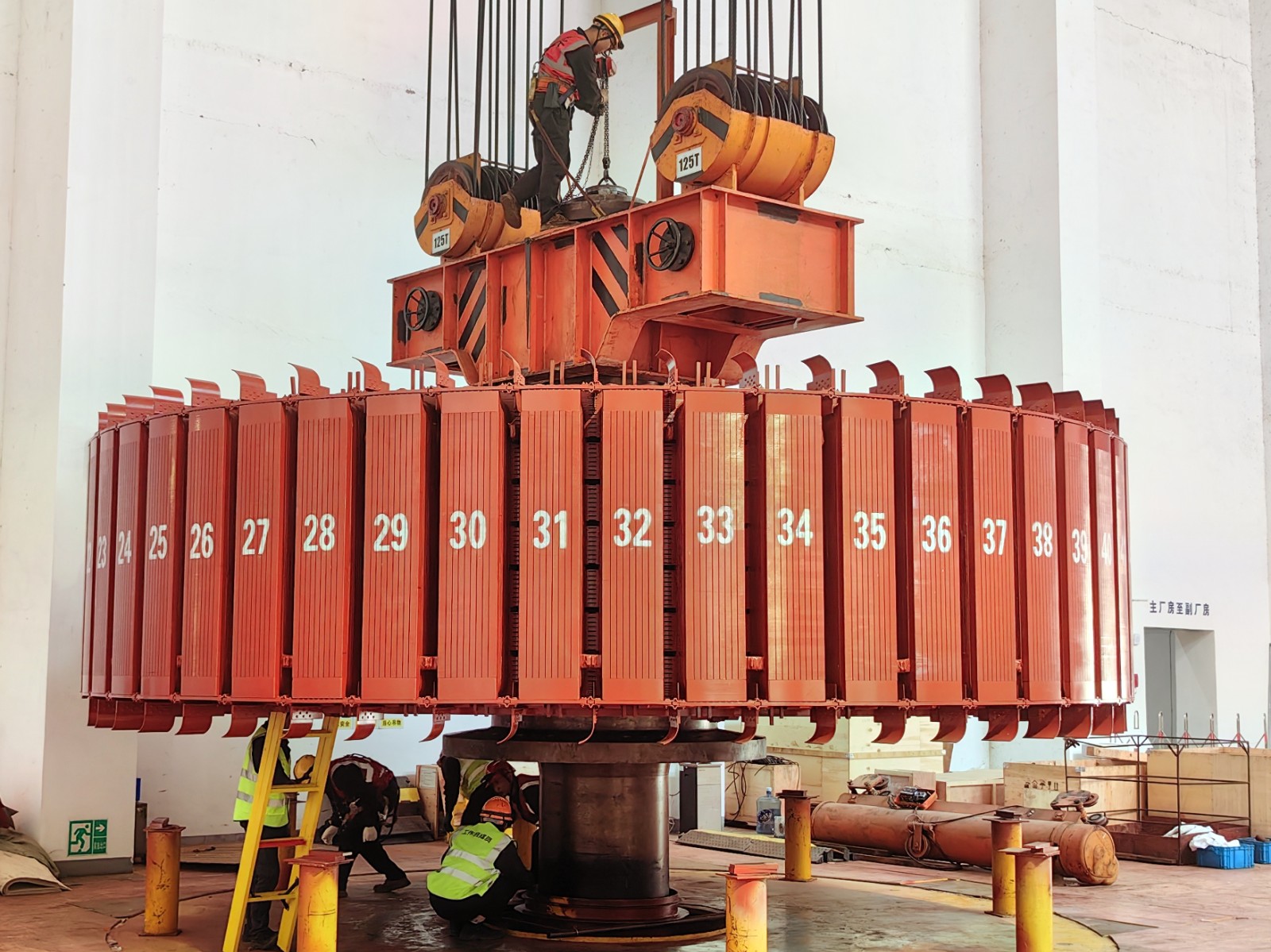 由于轉(zhuǎn)子與定子之間的間隙只有12毫米,要把這兩個“大家伙”精準(zhǔn)送回機(jī)坑指定位置并安裝好,難度系數(shù)非常高。川投電力高度重視,上下聯(lián)動,周密部署,全鏈條壓實安全生產(chǎn)責(zé)任,確保轉(zhuǎn)子回裝工作萬無一失。