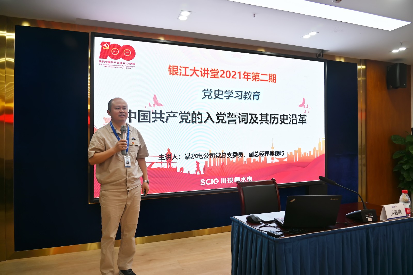 自川投能源攀水電公司“銀江大講堂”開講以來,一直受到了公司員工和各參建單位的廣大歡迎。為持續開展好“銀江大講堂”活動,近日結合黨史學習教育主題,開辦了黨史學習教育專場。黨員干部學習積極性高漲,公司全體員工及各參建單位黨員代表共40余人參加。