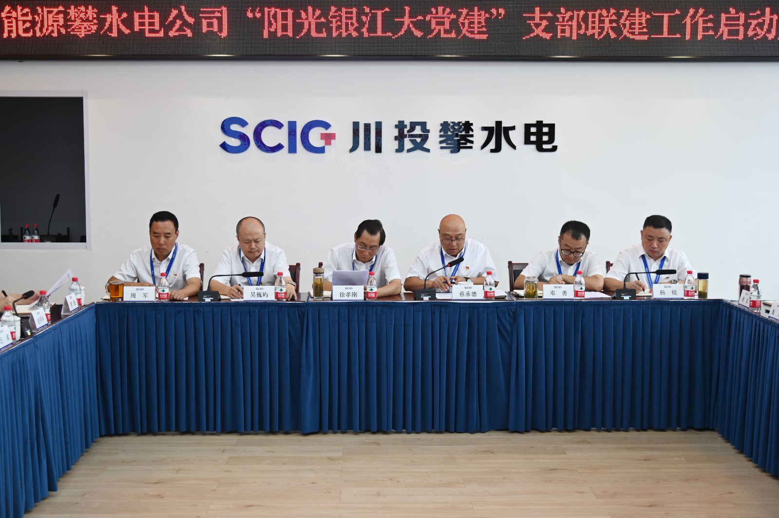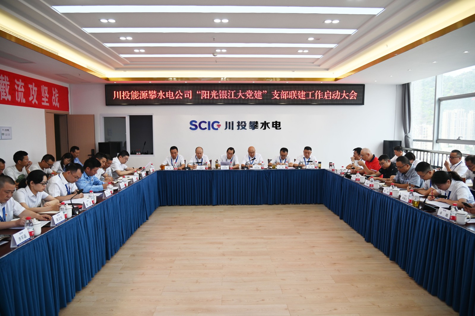 近日,川投能源攀水電公司黨總支召開了“陽光銀江大黨建”支部聯(lián)建工作啟動大會,正式成立兩個機(jī)關(guān)支部和六個聯(lián)建支部。川投能源副總經(jīng)理、攀水電公司黨總支書記、董事長徐孝剛,攀水電公司領(lǐng)導(dǎo)干部、參建單位負(fù)責(zé)人、機(jī)關(guān)支部及聯(lián)建支部支委共計40余人參會,會議由公司黨總支副書記、總經(jīng)理蔡承德主持。