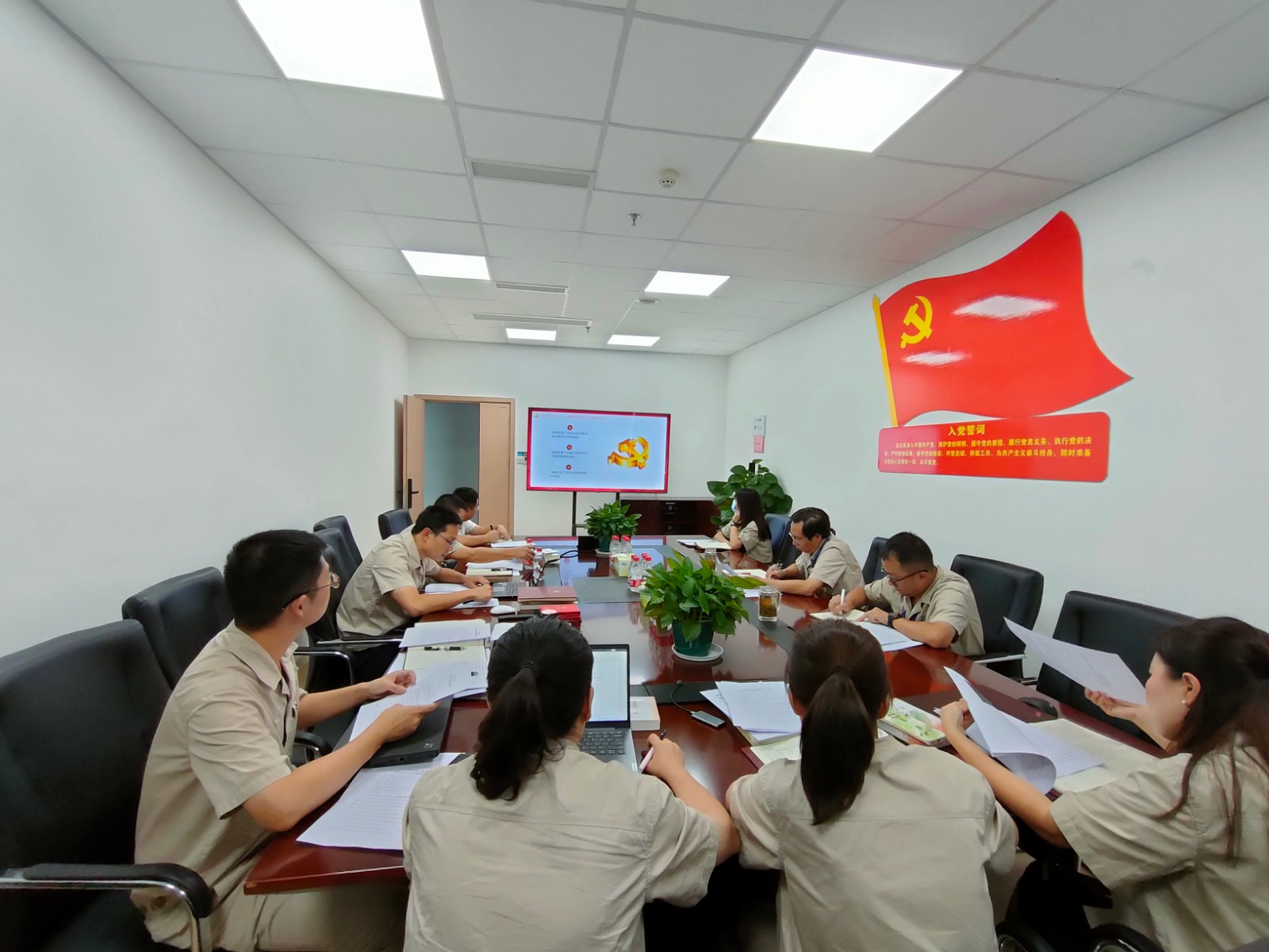 7月30日,攀水電公司機關(guān)第一黨支部開展黨史學習教育主題黨日活動。川投能源副總經(jīng)理、攀水電公司黨總支書記、董事長徐孝剛,黨總支委員、工會主席、董事會秘書鄧勇,副總經(jīng)理周軍按照雙重組織生活要求以普通黨員身份全程參會。會議由支部書記李偉主持,支部全體黨員、預備黨員、入黨積極分子共13人參加。